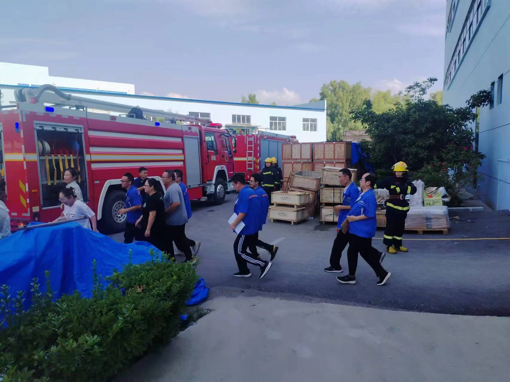 伴隨著警報聲響起,模擬火災情境隨即展開,員工們迅速采取行動,模擬用濕毛巾覆蓋口鼻,采取彎腰姿勢,在消防救援人員的疏導下,遵循預先設定的疏散路徑,井然有序地從工作崗位撤離到安全地帶。整個撤離過程緊湊而有條不紊,僅耗時5分鐘便完成了所有人員的平安疏散。