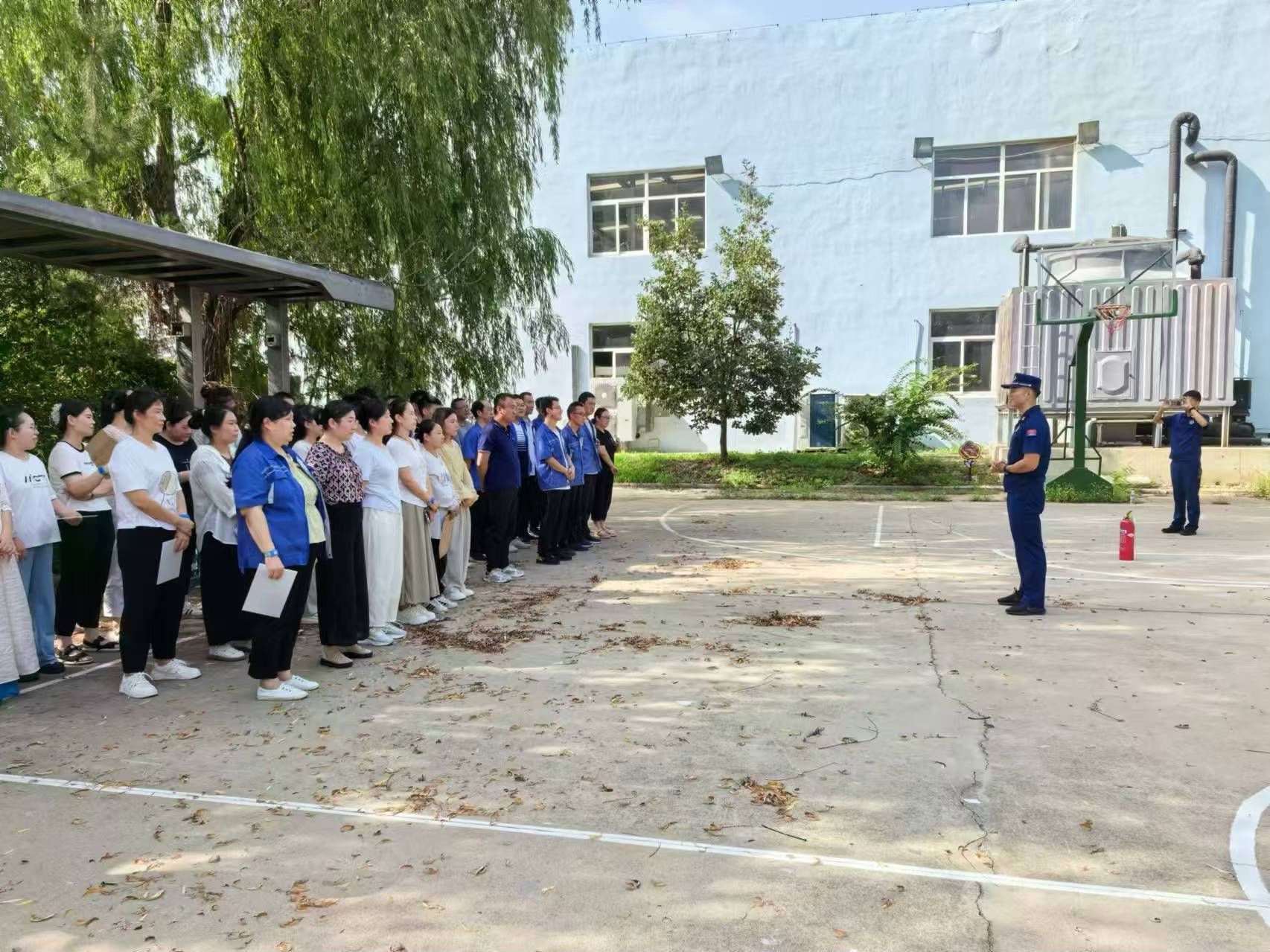 萊蕪區(qū)消防大隊鵬泉站消防員對參演員工進行消防安全常識培訓;對日常消防工作重點、應急救援和疏散要點包括滅火器材的使用進行著重宣講。