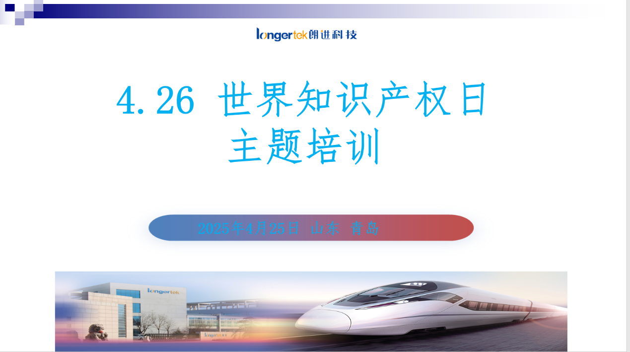 2025年4月26日是第二十五個“世界知識產權日”,為全面提升員工知識產權保護意識,牢筑知識產權風險防線,為企業(yè)穩(wěn)定發(fā)展提供知識產權戰(zhàn)略支撐,朗進科技開展了“426世界知識產權日”主題培訓活動。